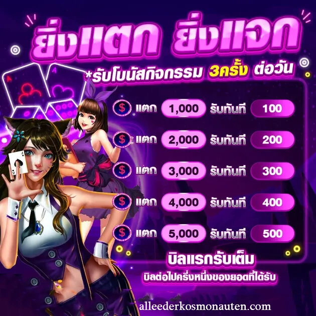 ตอบ : มีโบนัสต้อนรับสมาชิกใหม่ 100% เครดิตฟรี คืนยอดเสีย โบนัสวันเกิด แจกเครดิตฟรีทุกวัน และกิจกรรมพิเศษตามเทศกาล